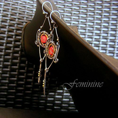 Srebro, mosiądz, stop gold filled oraz kwarc dymny. W komplecie z naszyjnikiem widocznym na jednym ze zdjęć.